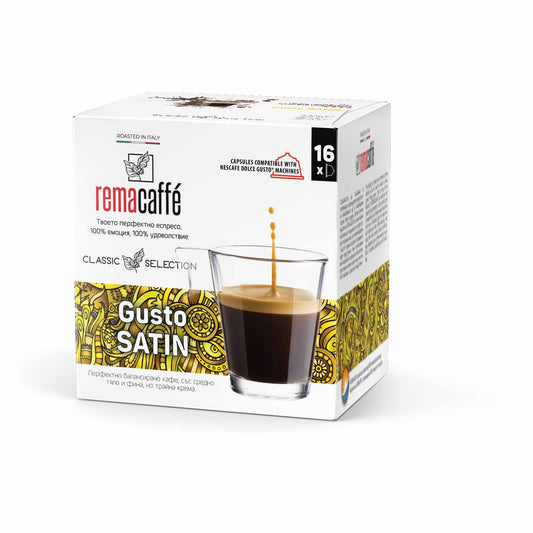капсули REMACAFFÉ Gusto Satin, 16 бр., съвместими с Nescafe Dolce Gusto кафемашиОбичайна цена 11.90 лв / 6.08 €Обичайна цена 11.90 лв / 6.08 € Цена при разпродажбаЕдинична цена за11.90 лв