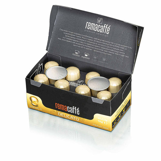 капсули REMACAFFE Delicato, 20 бр., съвместими с кафемашини NespressoОбичайна цена 22.90 лв / 11.71 €Обичайна цена 22.90 лв / 11.71 € Цена при разпродажбаЕдинична цена за22.90 лв