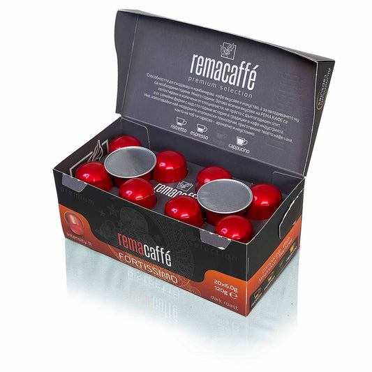 капсули REMACAFFE Fortissimo, 20 бр., съвместими с кафемашини NespressoОбичайна цена 22.90 лв / 11.71 €Обичайна цена 22.90 лв / 11.71 € Цена при разпродажбаЕдинична цена за22.90 лв