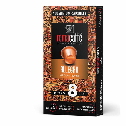 капсули REMACAFFЕ Allegro, 10 бр., съвместими с машини NespressoОбичайна цена 9.60 лв / 4.91 €Обичайна цена 9.60 лв / 4.91 € Цена при разпродажбаЕдинична цена за9.60 лв