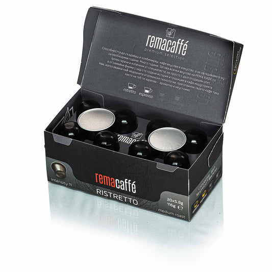 капсули REMACAFFE Ristretto, 20 бр., съвместими с кафемашини NespressoОбичайна цена 22.90 лв / 11.71 €Обичайна цена 22.90 лв / 11.71 € Цена при разпродажбаЕдинична цена за22.90 лв