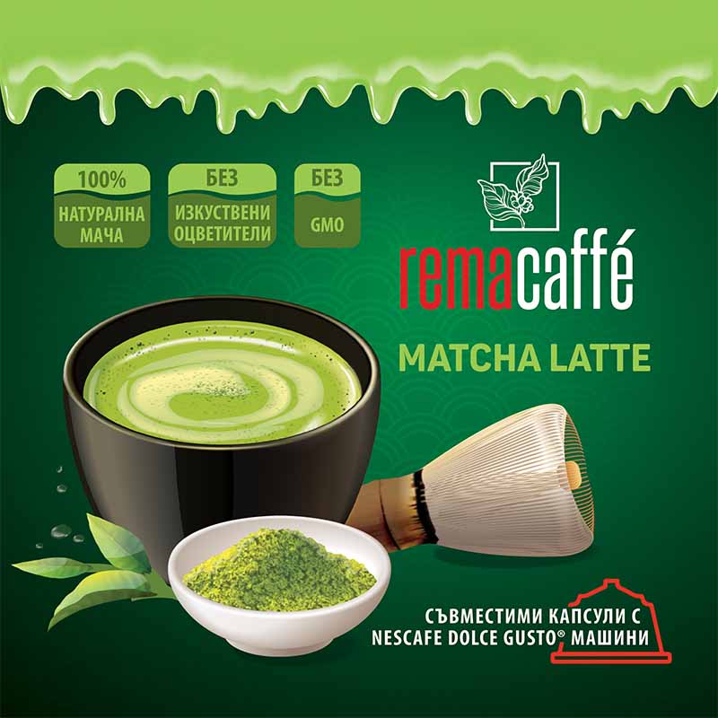 капсули REMACAFFÉ Matcha Latte, 16 бр., съвместими с Dolce Gusto кафемаши