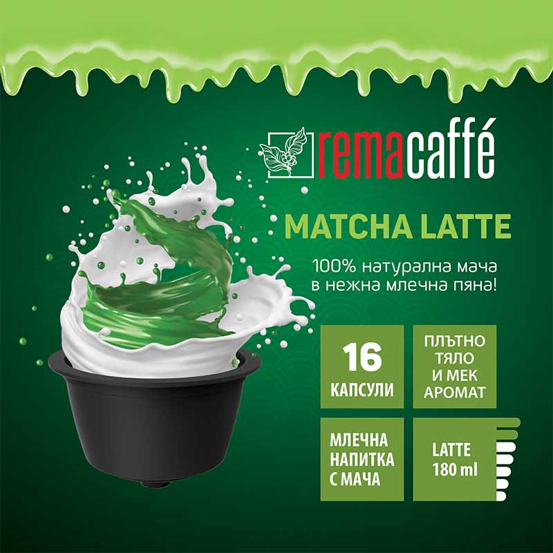 •  Опаковката съдържа 16 капсули REMACAFFÉ Matcha Latte.